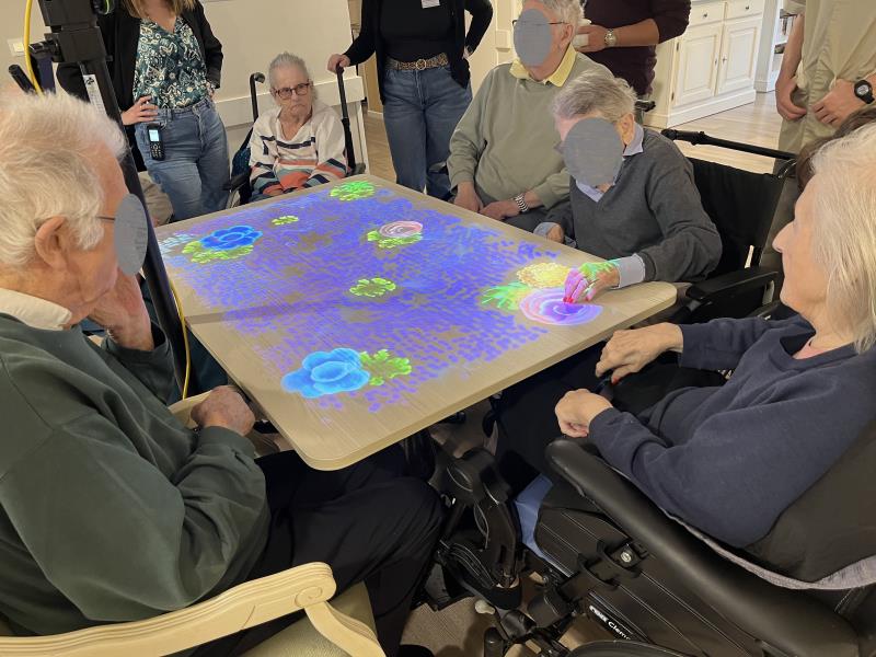 Récemment, plusieurs de nos résidents ont eu l’occasion de découvrir et de tester la Tovertafel, un dispositif interactif innovant pensé pour stimuler les capacités cognitives et motrices tout en favorisant le plaisir et le lien social.